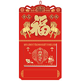 • 特度對開中國紅金雕窗花掛歷